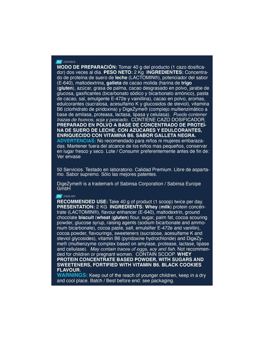 *Los sabores black cookies y cookie contiene azúcar y gluten presentes en la galleta en polvo.