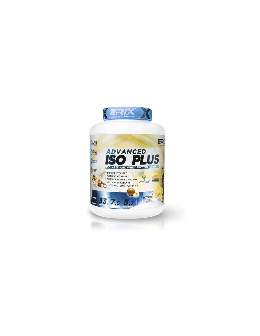 ISO ADVANCED PLUS una formula proteica enriquecida con vitaminas, creatina, aminoácidos para una total recuperación muscular. Disponible en 4 deliciosos y nutritivos sabores: vainilla con avellana, chocolate, oreo y cookies.